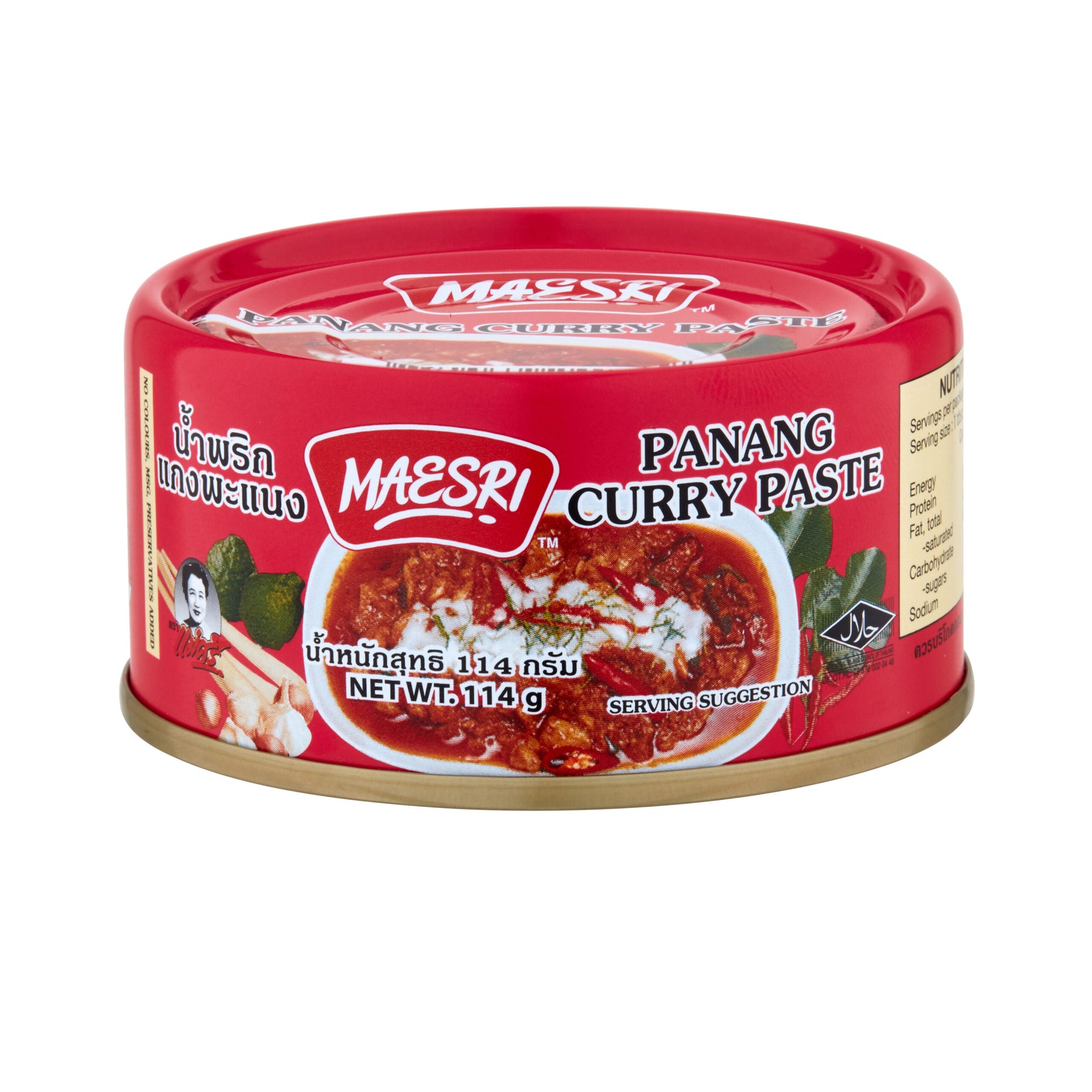 Tantalize your tastebuds with Maesri's Panang Curry Paste! This flavor-packed paste packs a punch with its rich blend of lemongrass, kaffir lime, garlic, and chili peppers. Add some zing to your next dish with a spoonful of this authentic curry paste!