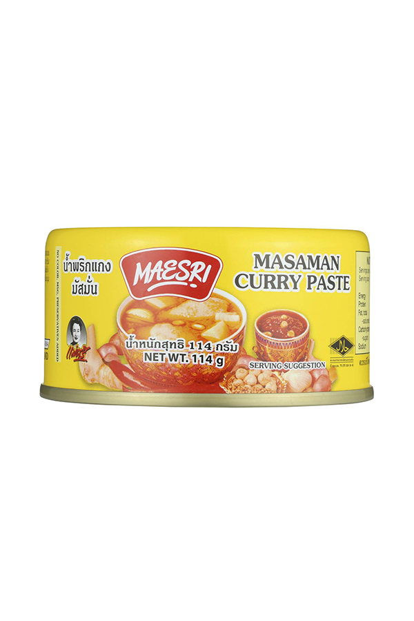Introducing Maesri Masaman Curry Paste, your secret ingredient for irresistibly flavorful dishes! Made with 100% pure spices, it's the perfect blend of creamy, nutty, and sweet flavors for a deliciously savory meal you can't resist! Spice up your cooking with Maesri Masaman Curry Paste. Yum!